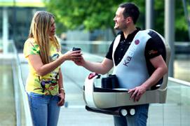 Der Mainzer Uwe Hartmann hat eine mobile Espresso-Bar erfunden. Der Catewalker kommt ganz ohne Wasser- und Stromanschluss aus und kann 120 Espressi produzieren, bevor er wieder neu aufgeladen werden muss. Neben dem Straßenverkauf könnte die portable Espressomaschine auch auf Großveranstaltungen und Festivals zum Einsatz kommen. Bereits seit 2006 hat der Erfinder an dem Prototypen gebastelt. Herausgekommen ist ein schickes und mit 20kg sehr leichtes, tragbares System.